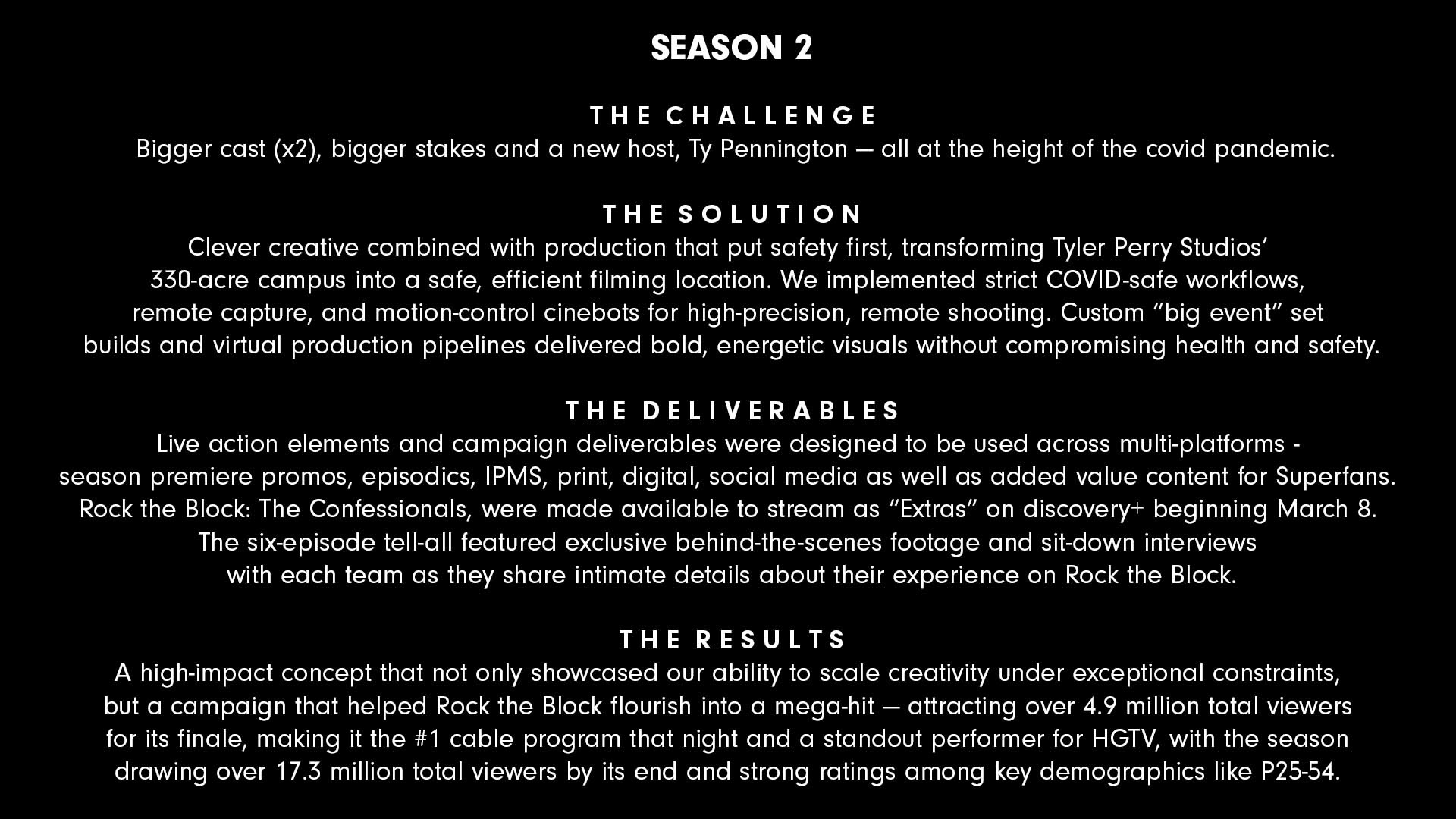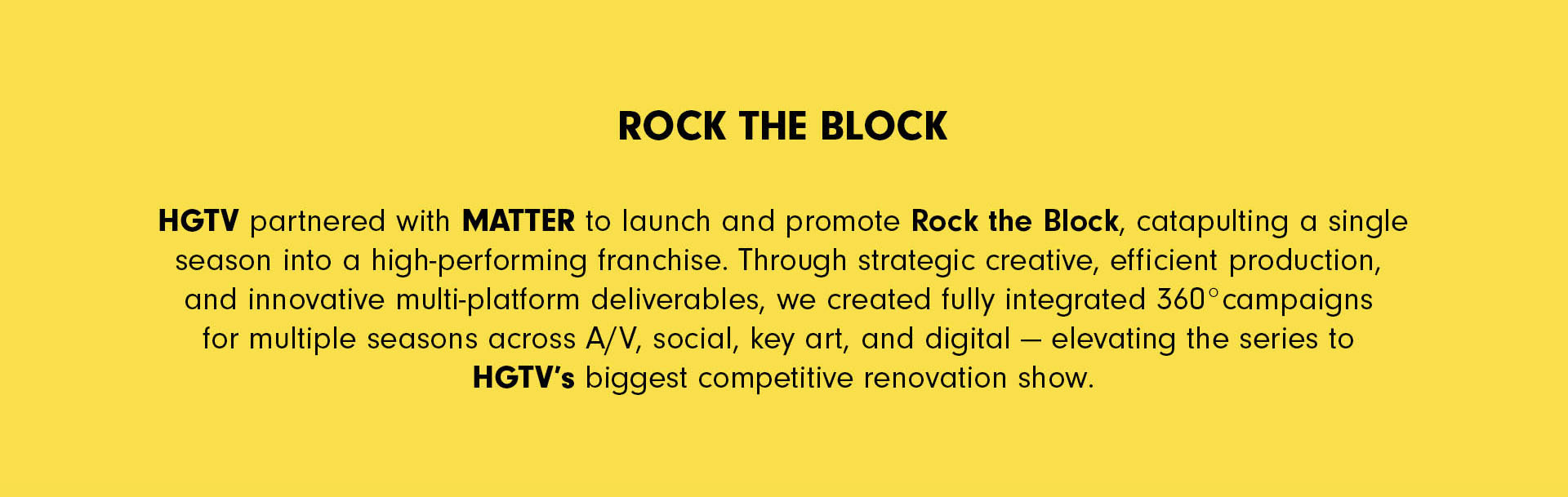 Additional content capture of the new season of Rock the Block created for HGTV.com/RockTheBlock, including before and after photos and videos, and behind-the-scenes extras. Fans interact via social media using #RockTheBlock on Facebook, Twitter, TikTok and Instagram.